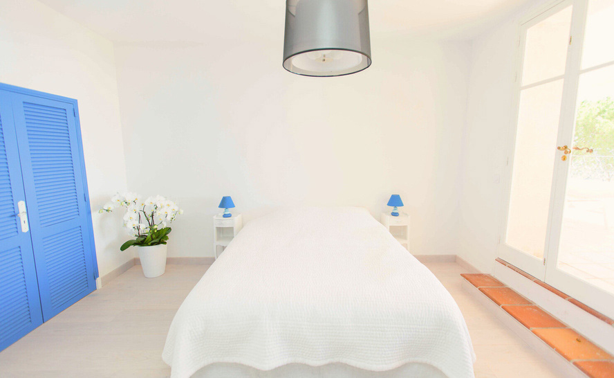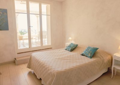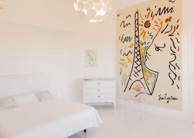 Inspirée des bleus méditerranéens de Chagall, cette grande suite dispose d’un lit de 160 cm et d’un accès direct sur la terrasse des chambres avec vue sur la piscine et la mer.