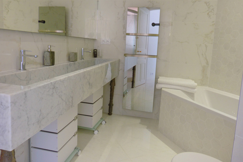 Située derrière la bibliothèque, la suite Picasso est à la fois centrale et à l’écart. Très spacieuse, elle dispose de la plus grande salle de bains de la propriété.