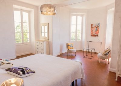 Équipées de 2 lits de 80 cm, ces suites claires et sobres disposent de leur accès direct à la terrasse des chambres avec vue sur la piscine et la mer, à l’exception de la suite Brayer qui donne au nord, sur les jardins et la chaîne de montagnes de la Sainte-Baume.