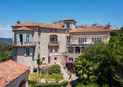 Édifié en 1905 sur les vestiges d’un prieuré médiéval, le château incarne l’élégance méridionale de la Belle Époque. Sa chapelle, datant du XIIIe siècle, et son bâtiment principal, achevé dans un style raffiné inspiré des grandes demeures du Sud, témoignent d’un passé aussi spirituel qu’esthétique. Remarqué par les frères Lumière, pionniers du cinéma tombés sous le charme de son architecture singulière, le domaine fut transformé en résidence de prestige à destination de l’aristocratie naissante de la Riviera.